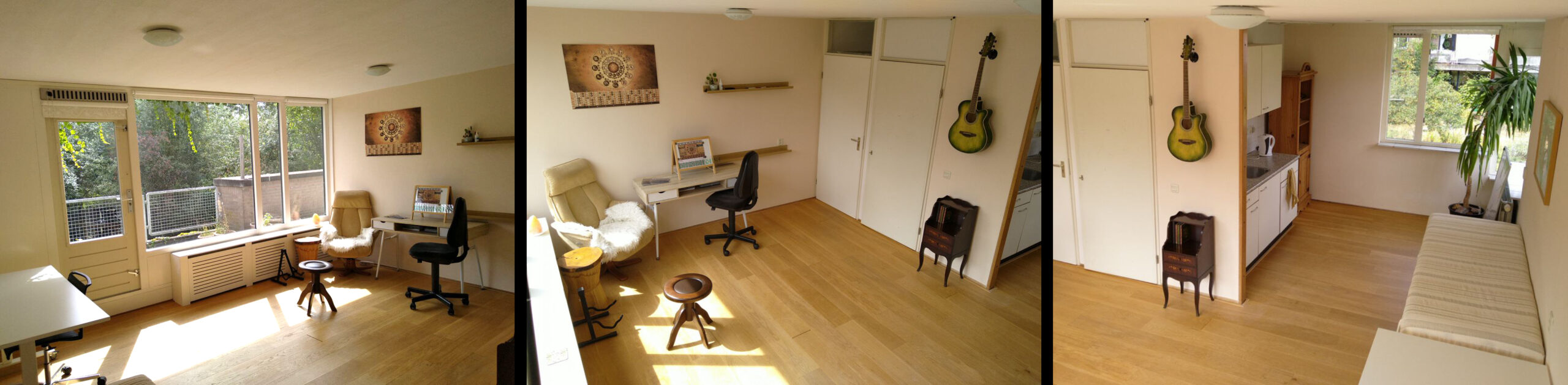 Ik geef mijn gitaarlessen in een atelier op ”Centraal Wonen het Punt” in Wageningen. De lesruimte is prachtig gelegen midden in het groen van de grote gedeelde buurttuin. Hier zijn enkele foto’s van hoe de ruimte er van binnen uitziet.