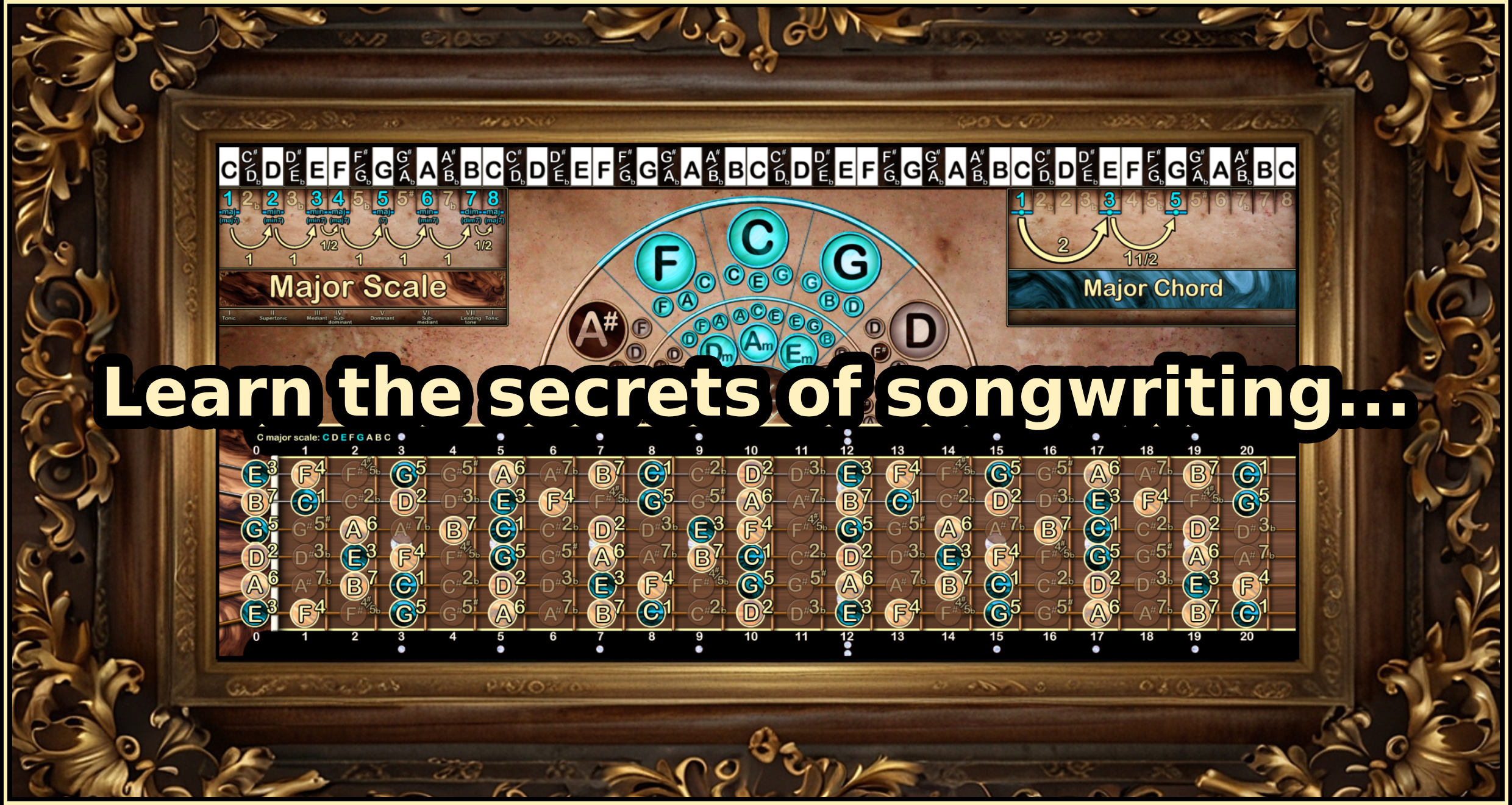 -De kwintencirkel is het geheim waarmee bijna alle popartiesten hun muziek schrijven. Met de kwintencirkel kan je in één oogopslag zien welke akkoorden mooi bij elkaar klinken en welke toonladders je kunt gebruiken om een passende melodie te schrijven. En als bonus kan je bij mijn aangepaste versie van de kwintencirkel ook in één oogopslag zien uit welke noten deze akkoorden en toonladders bestaan.